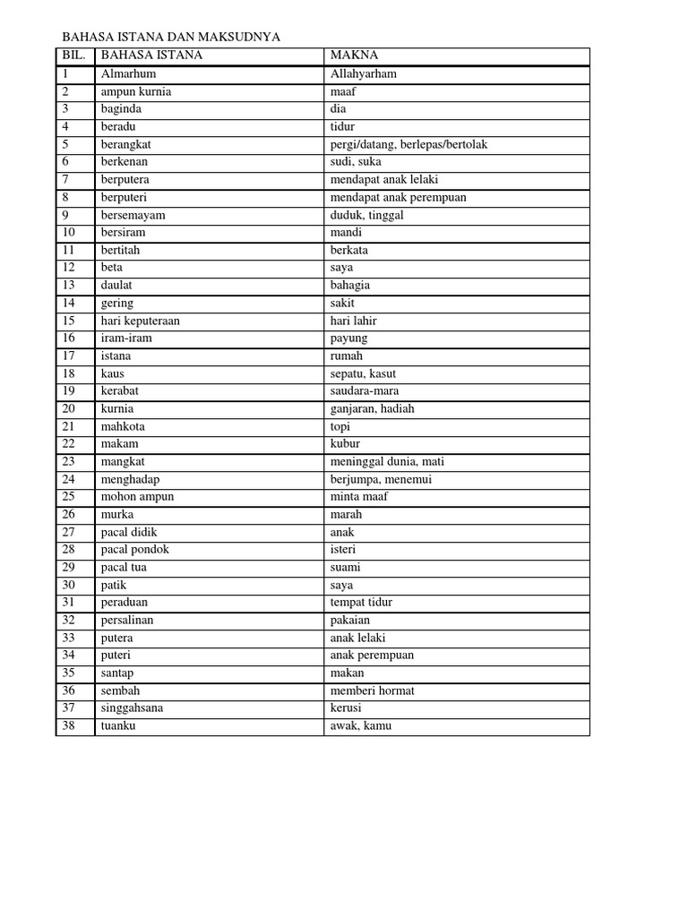 37 Perkataan Lazim Dari Bahasa Istana Selongkaq